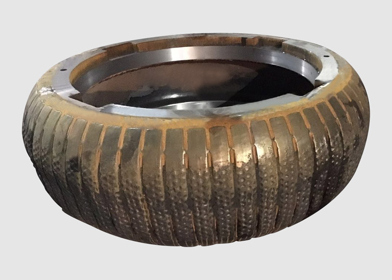 陶瓷金屬復(fù)合輥套由陶瓷和高鉻合金復(fù)合成,此耐磨件擁有獨(dú)特的陶瓷金屬蜂窩結(jié)構(gòu),能夠增加表面與物料研磨面積及咬合力,提高研磨效率。相較于普通高鉻輥套,陶瓷金屬復(fù)合輥套的耐磨性能夠提升2-3倍,且磨損均勻,運(yùn)行穩(wěn)定性更高。使用壽命長(zhǎng),穩(wěn)定性高,減少停機(jī)更換或修復(fù)帶來的產(chǎn)量損失,降低維修成本,使檢修計(jì)劃性更強(qiáng)。